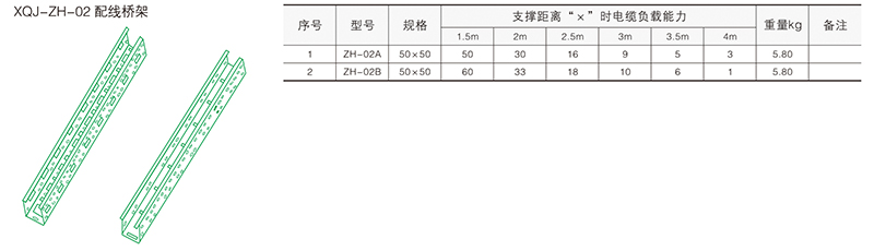 組合電纜橋架在不同跨距下允許載荷見頁表二。