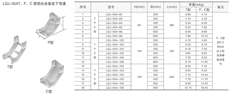 LQJ-05AT、P、C型鋁合金垂直下彎通