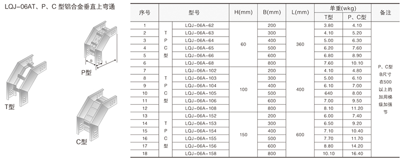 鋁合金電纜橋架在某種結(jié)構(gòu)形式中無其它結(jié)構(gòu)形式中的某-種產(chǎn)品類別,選型可作代用表示。例如:在LQU-CC型槽式鋁合金電纜橋架結(jié)構(gòu)形式中,無鋁合金配線橋架中的LPC-03D, 即表示為LFC-CC-03D。