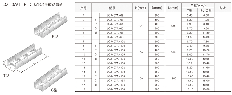 鋁合金電纜橋架在某種結構形式中無其它結構形式中的某-種產品類別,選型可作代用表示。例如:在LQU-CC型槽式鋁合金電纜橋架結構形式中,無鋁合金配線橋架中的LPC-03D, 即表示為LFC-CC-03D。